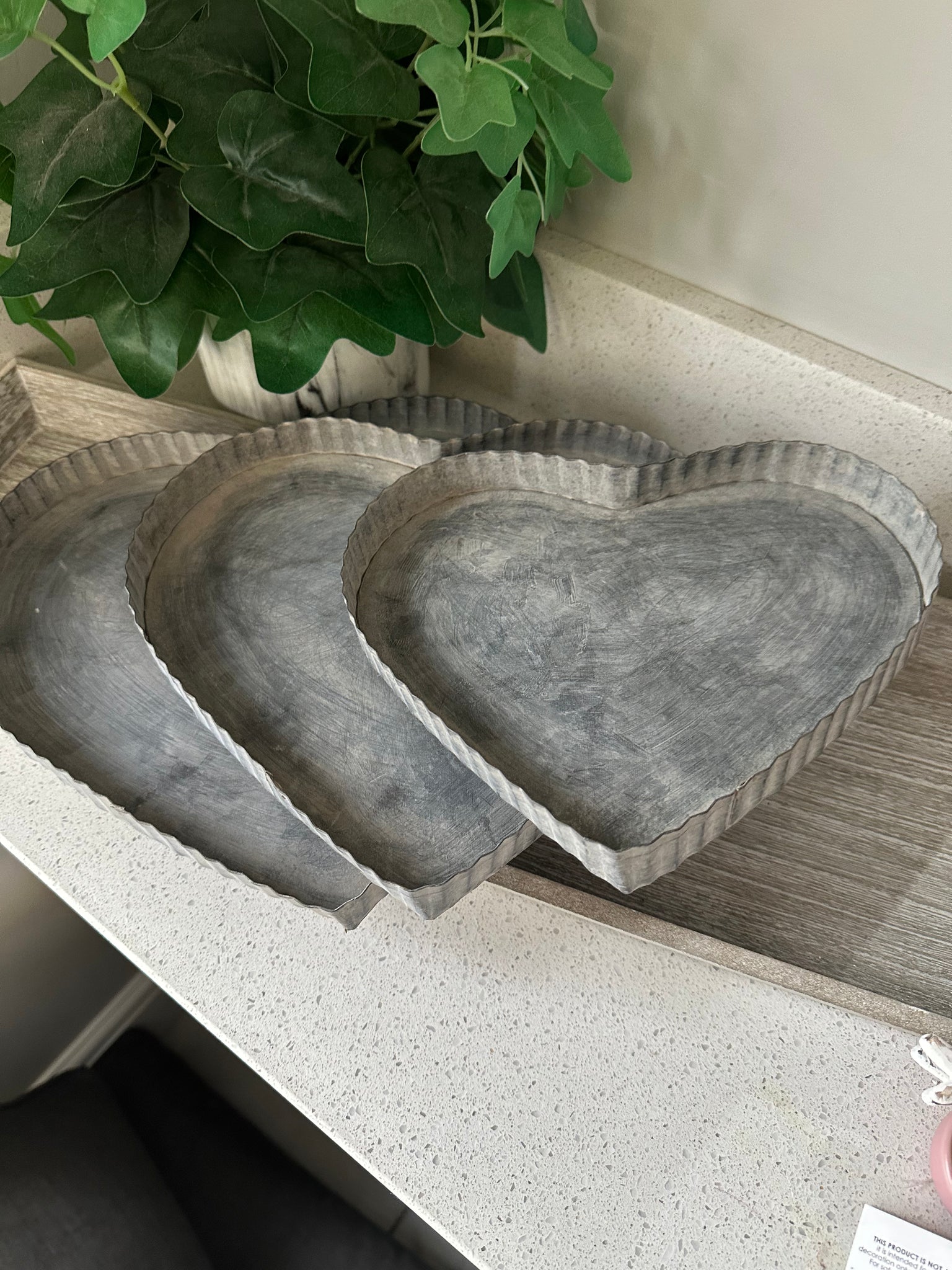 Lovely set of three metal heart trays, all sat inside each other when not in use