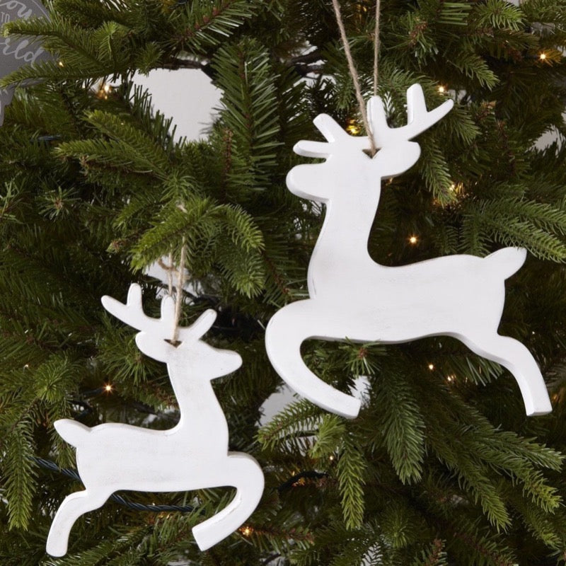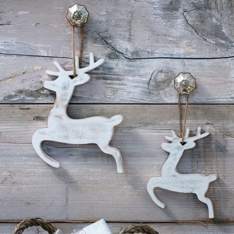 • These fabulous dancing reindeer are hand carved and painted giving a white distressed wood appearance