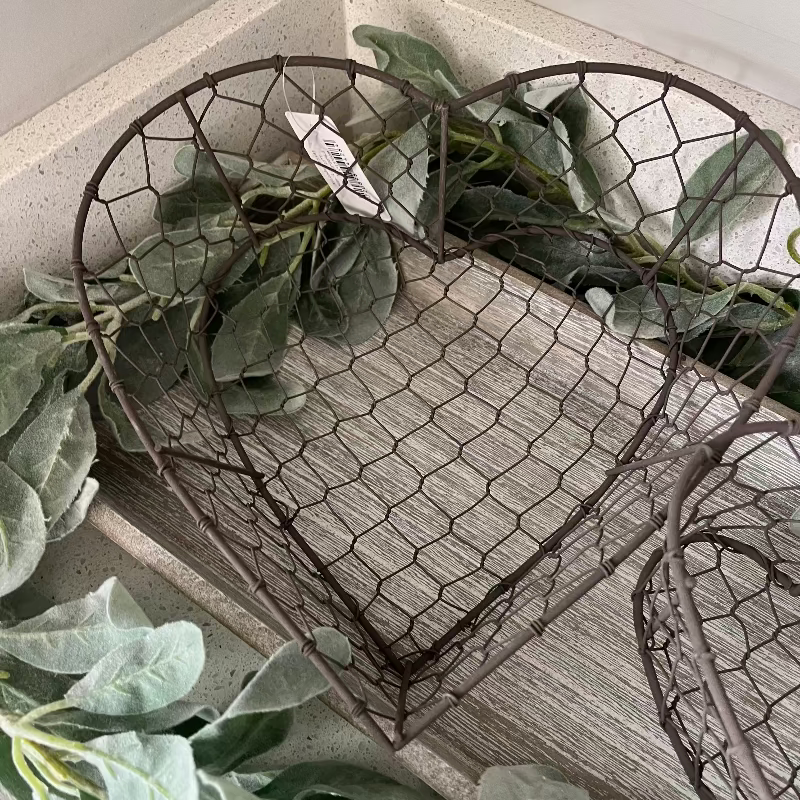 Lovely Set of Three Wire Storage Baskets in the shape of a heart perfectly complementing any decorative style